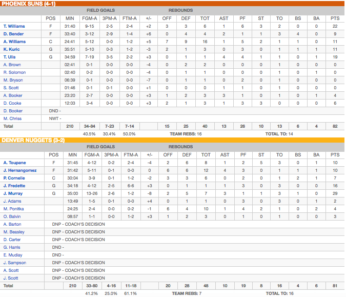 Phoenix Suns – Denver Nuggets – 82-81 (après prolongation)