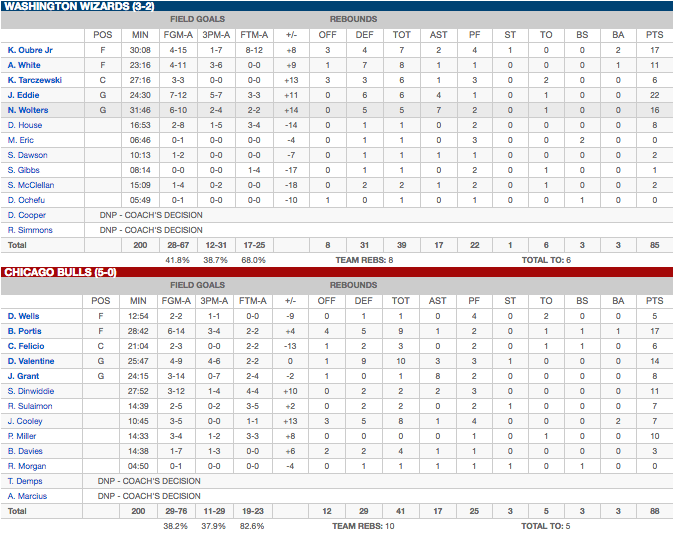 Washington Wizards – Chicago Bulls : 85-88