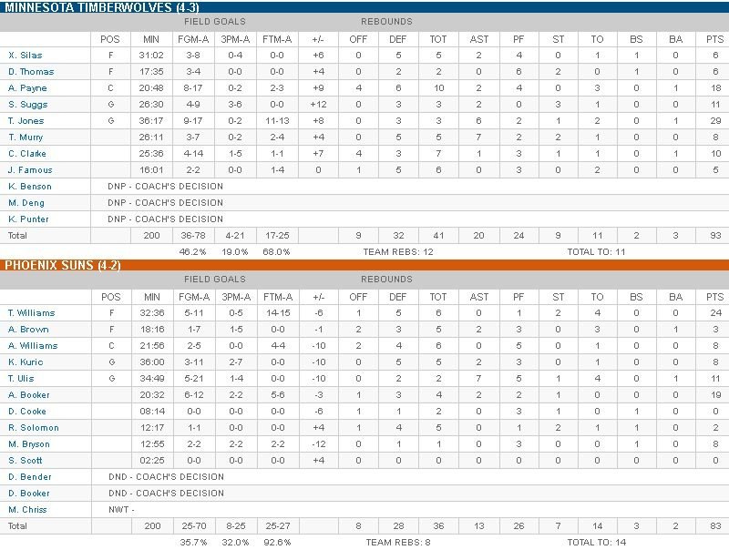 Minnesota Timberwolves – Phoenix Suns 93-83