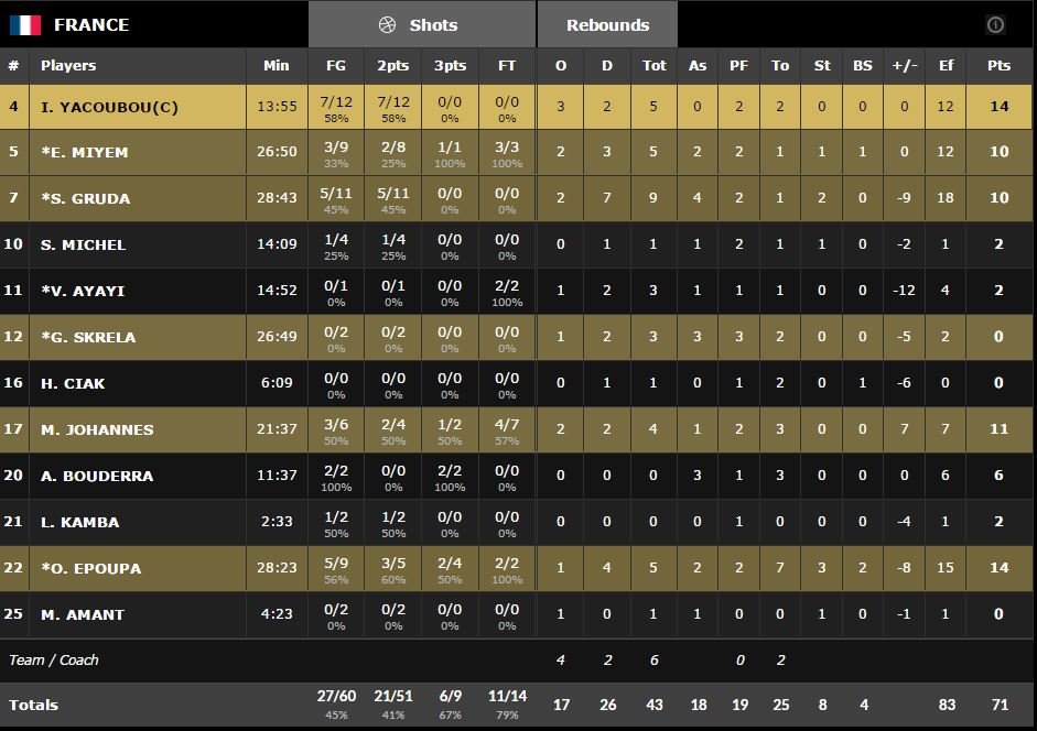 Le 3ème quart-temps démarre on ne peut mieux avec un 8-0 d’entrée (2 points et 1 passe pour le and one de Miyem signé Johannès et un 3-points d’Epoupa). Une série à laquelle les Japonaises répondent sans attendre par leur propre 8-0 stoppée par un 3-points d’Epoupa à 0° qui fait du bien pour revenir à 5 points, 48-43. Bouderra l’imite moins d’une minute plus tard, 48-46. Gruda enchaîne sur un de ses fadeaways signature mais les Japonaises continuent à se promener comme bon leur semble dans une défense tricolore en retard. L’écart passe à 8 points, 58-50, sur un nouveau drive non contesté d’Asami Yoshida. La meneuse plante un buzzer en deux temps face au cercle à 3-points pour le +9, 63-54.