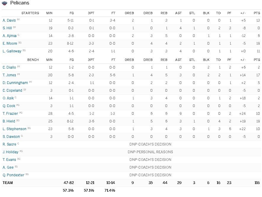 Dans l’autre rencontre les Pelicans ont battu Dallas avec Alexis Ajinça titulaire au poste de pivot. Le Français termine avec 6 points et 5 rebonds en 14 minutes.