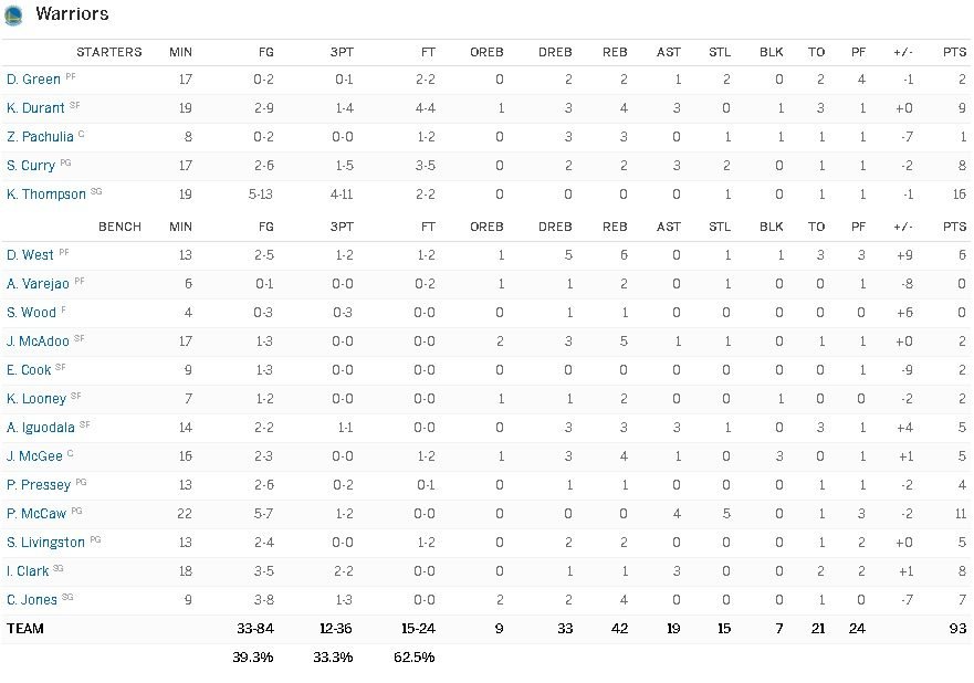 Golden State Warriors – Toronto Raptors 93-97