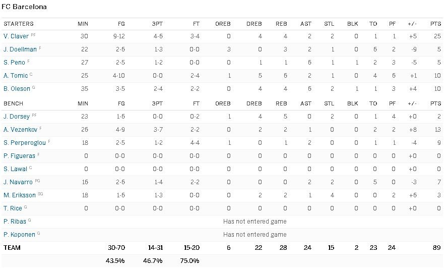 Westbrook signe 12 points à 2/7 et 5 passes en 21 minutes, Enes Kanter signe 22 points et 8 rebonds. Joffrey Lauvergne a joué, 20 minutes, pour 8 points et 4 rebonds. Côté Barça Victor Claver inscrit 25 points.