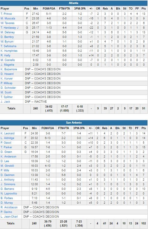 Atlanta Hawks – San Antonio Spurs 91-102