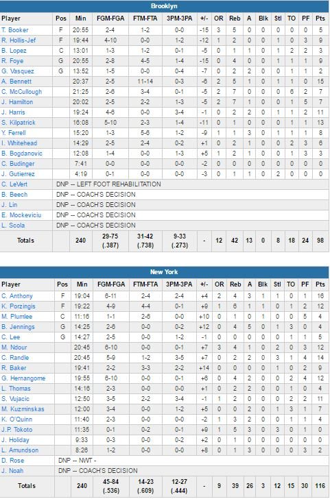 Brooklyn Nets – New York Knicks 98-116