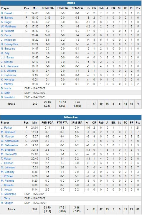 Dallas Mavericks – Milwaukee Bucks 74-88