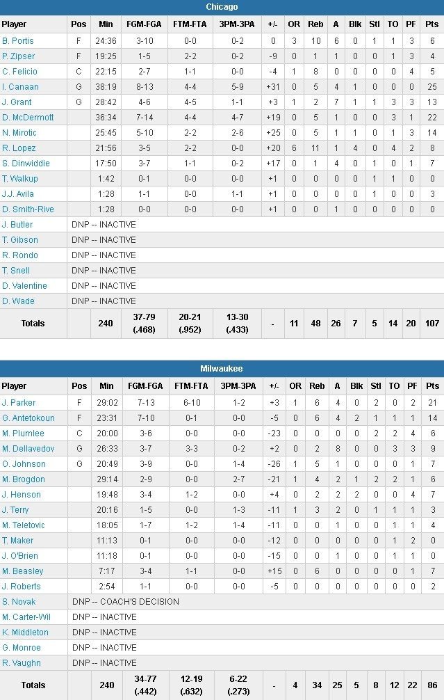Milwaukee Bucks – Chicago Bulls 86-107
