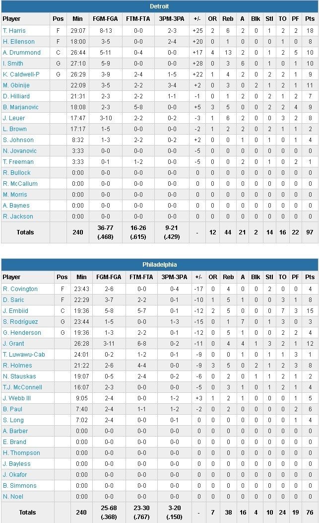 Philadelphia Sixers – Detroit Pistons 76-97