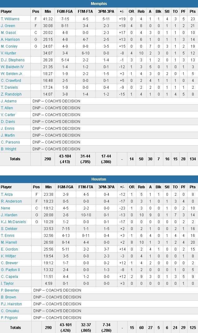 Houston Rockets – Memphis Grizzlies 125-134