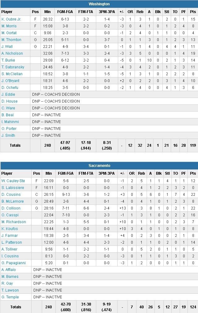 Sacramento Kings – Washington Wizards 124-119