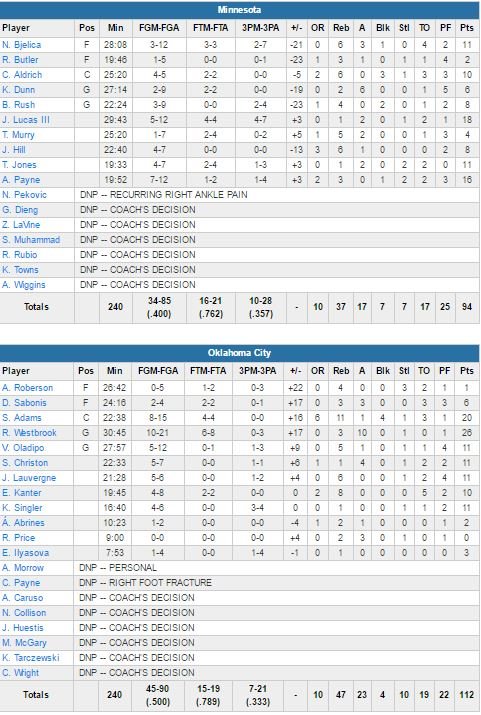 Minnesota Timberwolves – Oklahoma City Thunder 94-112