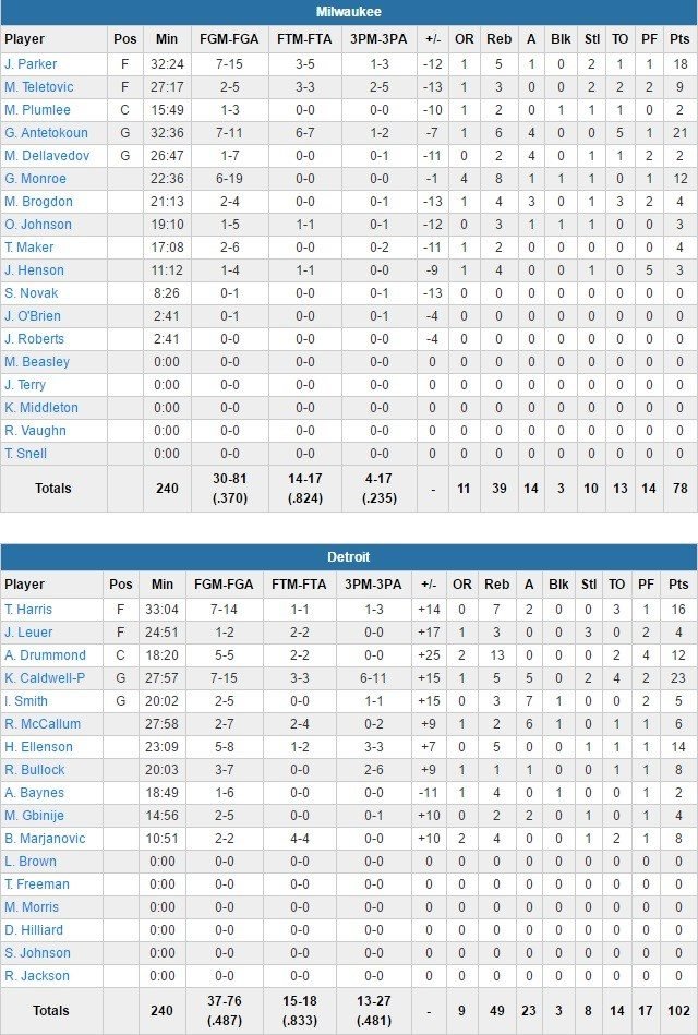 Detroit Pistons – Milwaukee Bucks 102-78