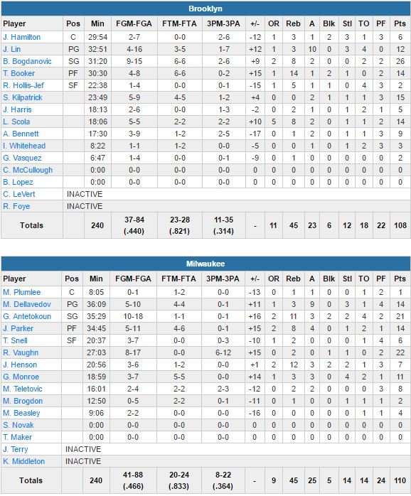 Brooklyn Nets – Milwaukee Bucks 108-110