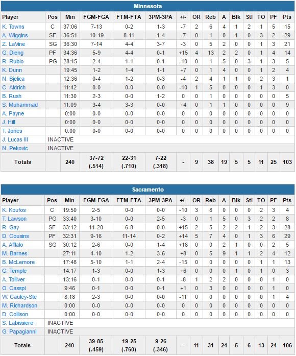 Minnesota Timberwolves – Sacramento Kings 103-106