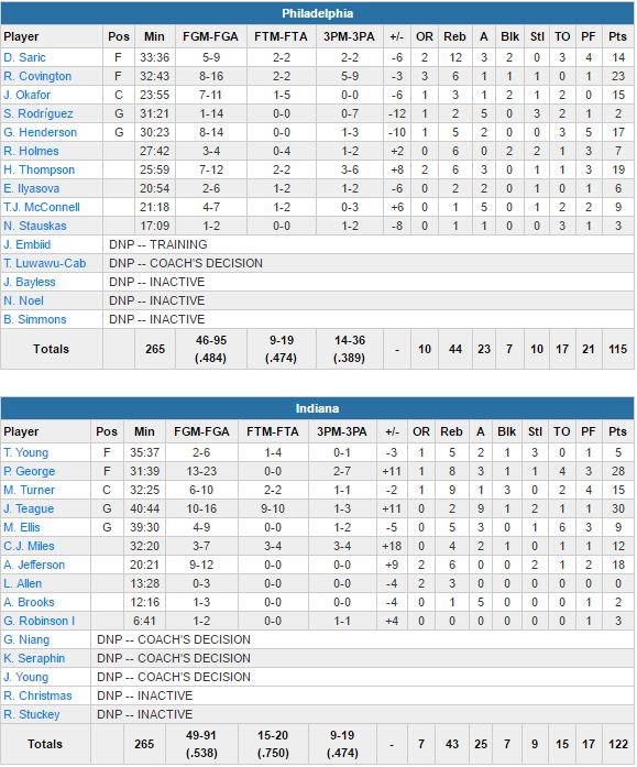 Philadelphie 76ers – Indiana Pacers 115-122