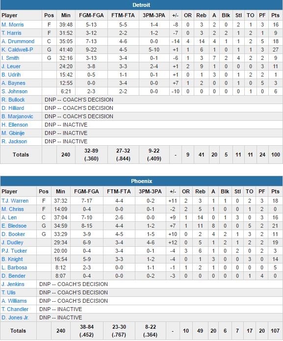 Detroit Pistons – Phoenix Suns 100-107