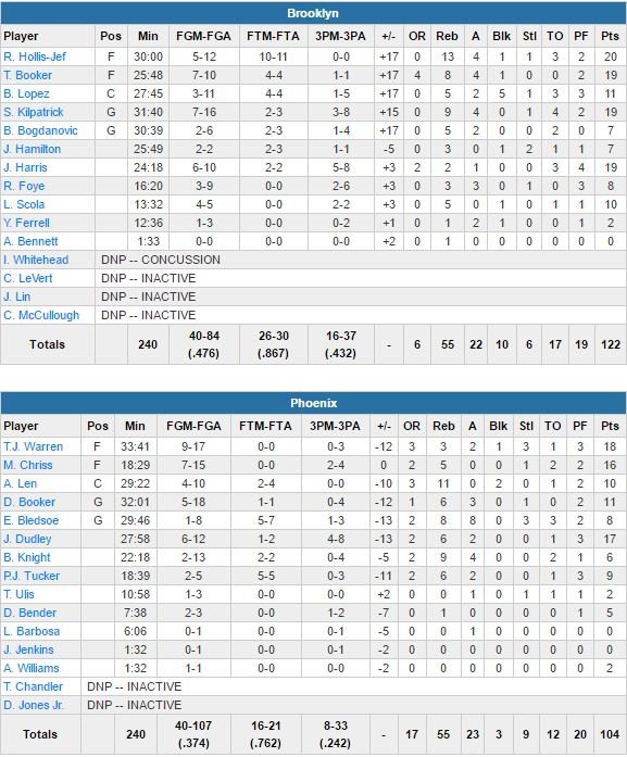 Brooklyn Nets – Phoenix Suns 122-104