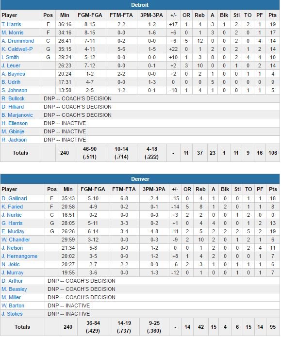 Detroit Pistons – Denver Nuggets 106-95