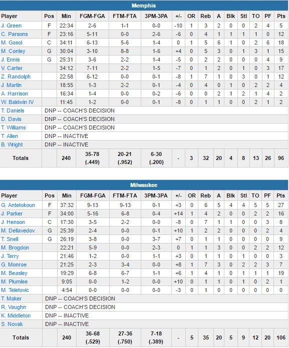Memphis Grizzlies – Milwaukee Bucks 96-106