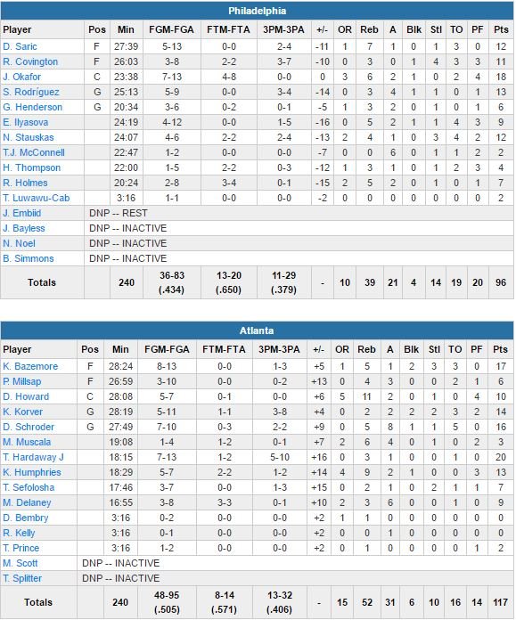 Philadelphia 76ers – Atlanta Hawks 96-117