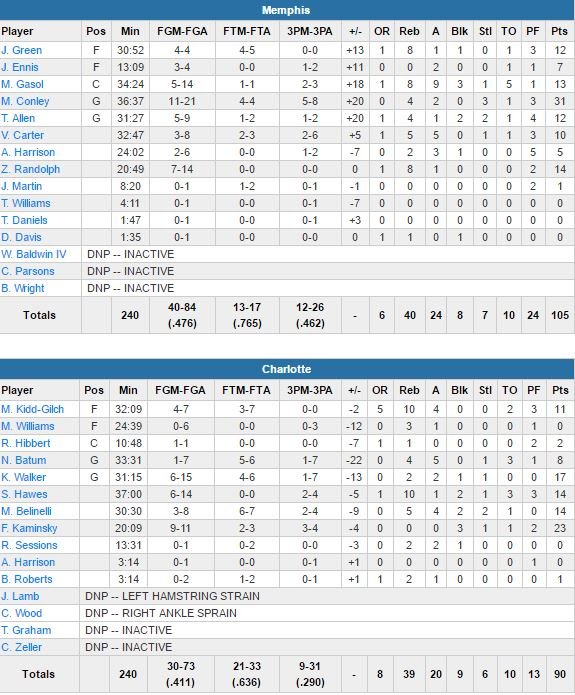 Memphis Grizzlies – Charlotte Hornets 105-90