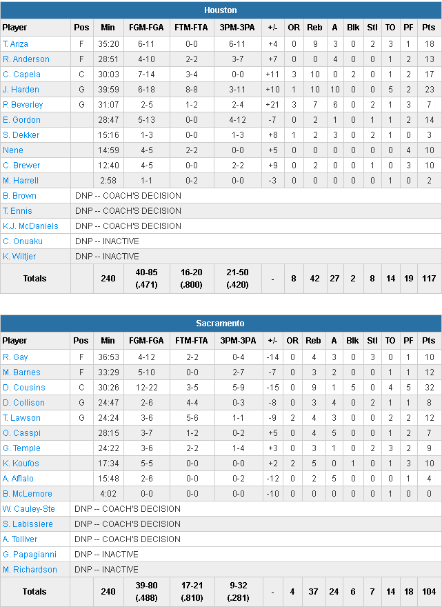 Sacramento Kings – Houston Rockets 104-117