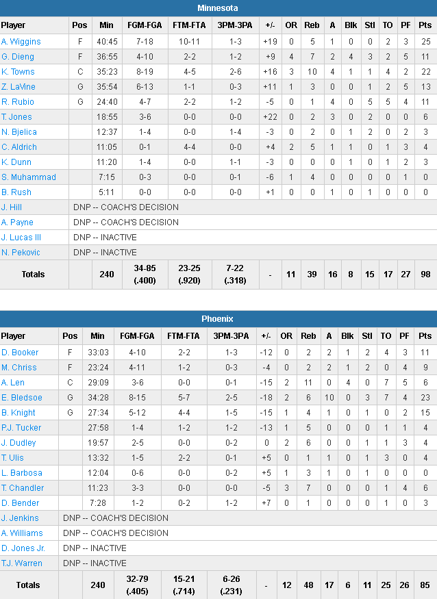 Phoenix Suns – Minnesota Timberwolves 85-98