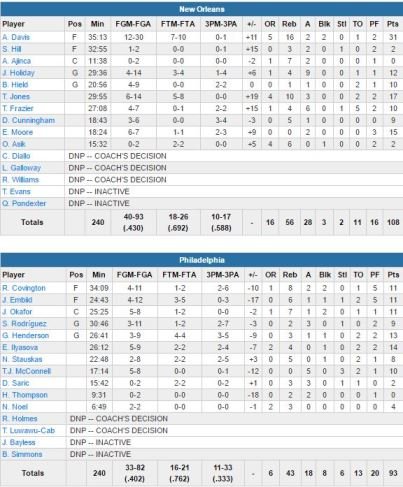 New Orleans Pelicans – Philadelphia 76ers 108-93