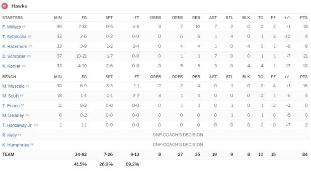 Les Hawks (sans Dwight Howard, victime de douleurs au dos, pour un 2ème match d’affilée) de Dennis Schröder et Paul Millsap (respectivement 21 points et 18 points et 10 rebonds) perdent un 6ème match en 7 rencontres à la Philips Arena. Minnesota va faire la différence dans le 4ème quart-temps (remporté 25-15) au terme d’un match disputé. Devant 85-80 à 5’07 grâce un layup sur contre-attaque de LaVine suite à une interception de Ricky Rubio (10 points, 5 rebonds et 8 passes), les Wolves verront Atlanta revenir à 3 points sur la possession suivante, mais ça n’ira pas plus loin.
