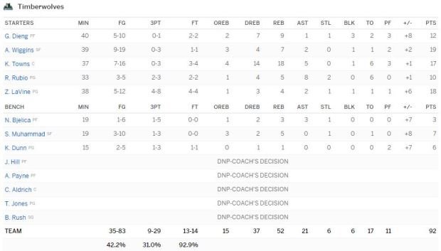 À noter : Minnesota a dominé 52-35 au rebond.