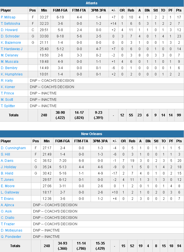 New Orleans Pelicans – Atlanta Hawks 94-99