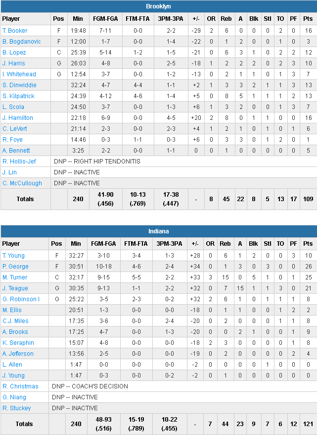 Brooklyn Nets – Indiana Pacers 109-121