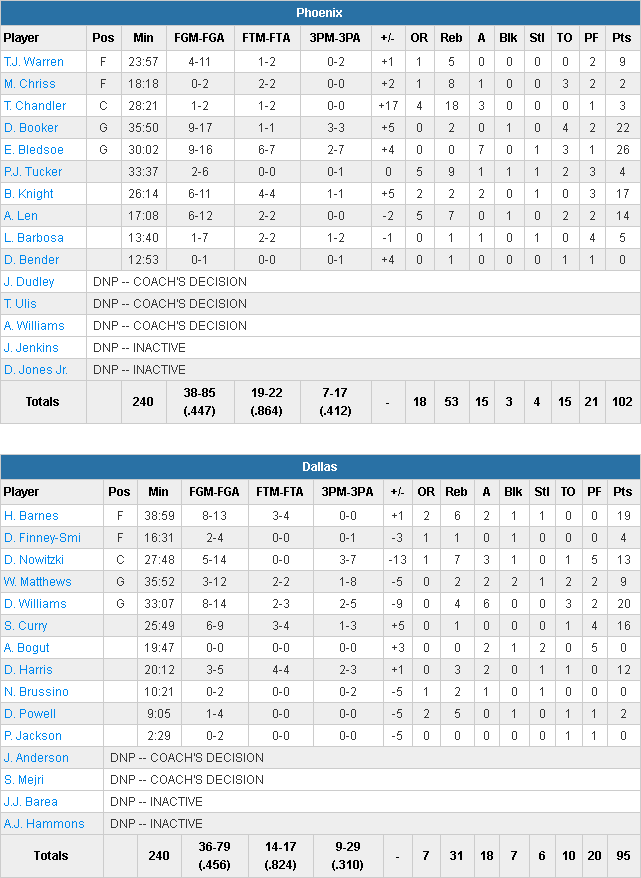 Dallas Mavericks – Phoenix Suns 95-102