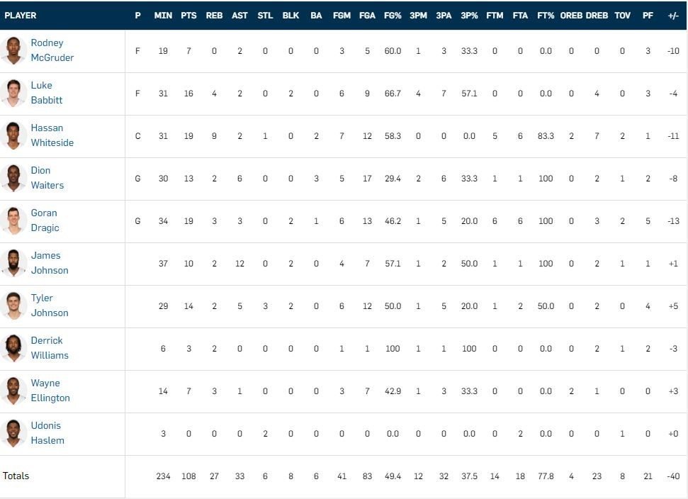 Goran Dragic (6/13, 3 rebonds et 3 passes) et Hassan Whiteside (7/12, 9 rebonds et 2 passes) signent tous deux 19 points pour Miami alors que Luke Babbitt bat son record en saison (16 points). Les Bucks plantent 42 points dès le 1er quart-temps (leur record dans n’importe quel quart-temps cette saison) et à partir de là (40-32 après 12 minutes de jeu), revenir va être bien compliqué pour Miami.