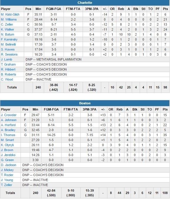 Encore une fois cette nuit, Isaiah Thomas a montré qu’il était le boss du 4ème quart-temps. Le meneur des Celtics a inscrit 17 de ses 35 points (14/25, 5 rebonds et 4 passes, 25ème match consécutif à au moins 20 points) dans les 12 dernières minutes hier et Boston s’est imposé 108-98 face aux Hornets, une 9ème victoire en 11 matchs pour l’équipe coachée par Brad Stevens.