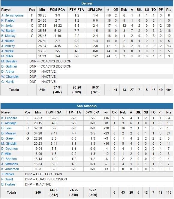À noter : Denver perd 15 ballons, contre 8 pour San Antonio.