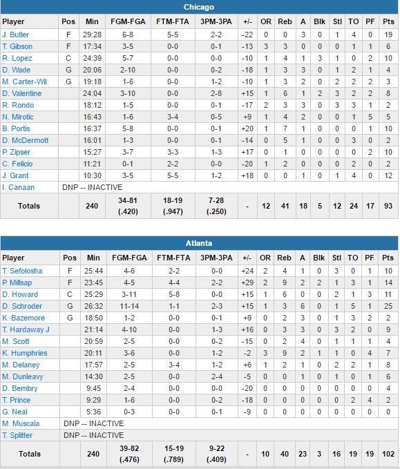À noter : les Hawks (devant de 29 points à la mi-temps, record en saison) s’imposent pour la 6ème fois consécutive contre les Bulls.