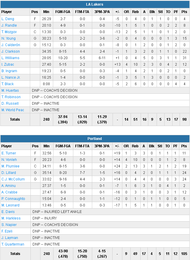 Portland Trail Blazers – Los Angeles Lakers 105-98