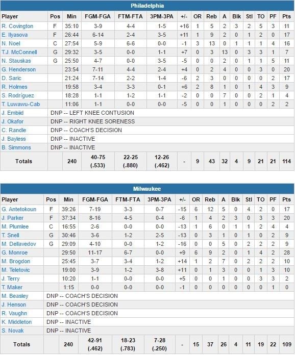 Philadelphia 76ers – Milwaukee Bucks 114-109
