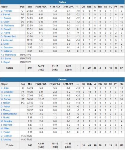 Dallas Mavericks – Denver Nuggets 87-110