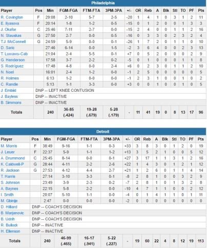 Philadelphia 76ers – Detroit Pistons 96-113