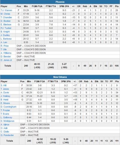Phoenix Suns – New Orleans Pelicans 106-111