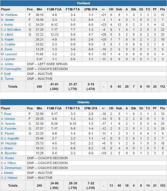 Son All-Star break, Damian Lillard l’a passé chez lui en mode détente et télévision. Alors forcément hier à Orlando, il avait les jambes fraîches, un peu trop fraîches pour le Magic d’Evan Fournier (20 points à 7/17, 5 rebonds et 2 passes) et Nikola Vucevic (25 points à 8/20 et 9 rebonds), qui a pourtant mené de jusqu’à 14 points dans le match avant de s’incliner 112-103.