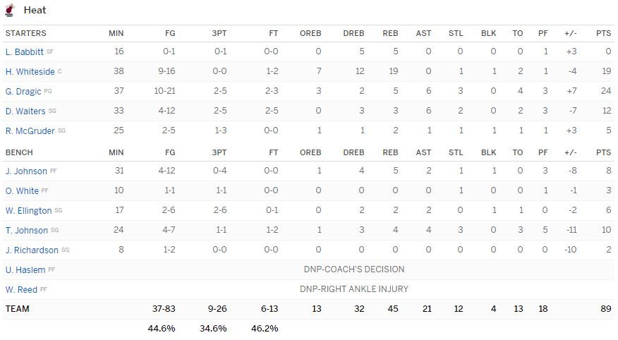 Dallas, 2 victoires pour 0 défaite depuis l’arrivée de Nerlens Noel (6 points à 3/3 et 6 rebonds) dans l’effectif, a alterné le bon et le moins bon dans ce match. L’équipe a ainsi été menée de 14 points dans le 1er quart-temps avant de laisser filer une avance de 11 points dans le 3ème. Goran Dragic termine meilleur marqueur du Heat avec 24 points et Hassan Whiteside signe un solide 19 points à 9/16 et 19 rebonds mais l’équipe ne marque pas le moindre points sur les dernières 4’37 du match et voit sa série de 3 victoires stoppée.