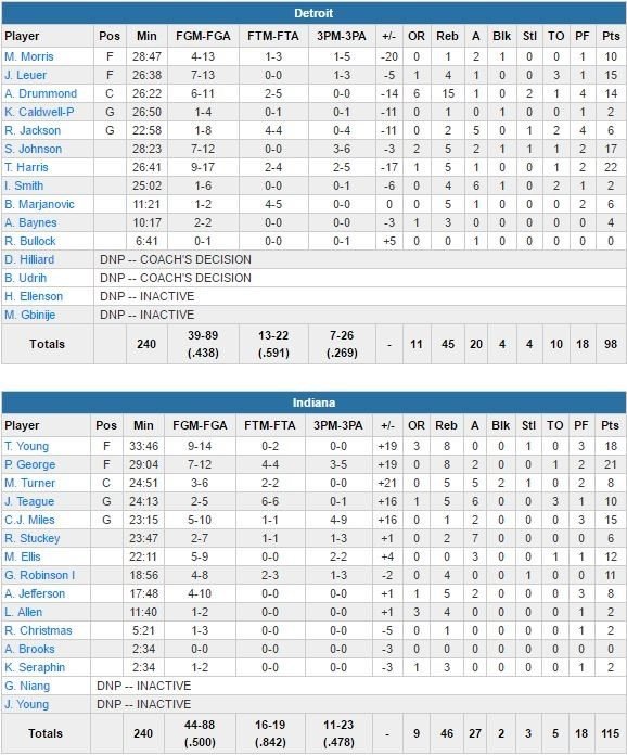 Detroit Pistons – Indiana Pacers 98-115