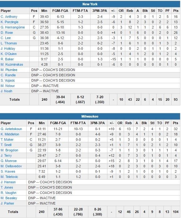 Derrick Rose termine meilleur marqueur des Knicks avec 26 points (13/16, 6 passes), dont 20 en seconde mi-temps. Carmelo Anthony, de retour après un match d’absence (genou gauche douloureux), signe 16 points, dont seulement 6 en seconde mi-temps.