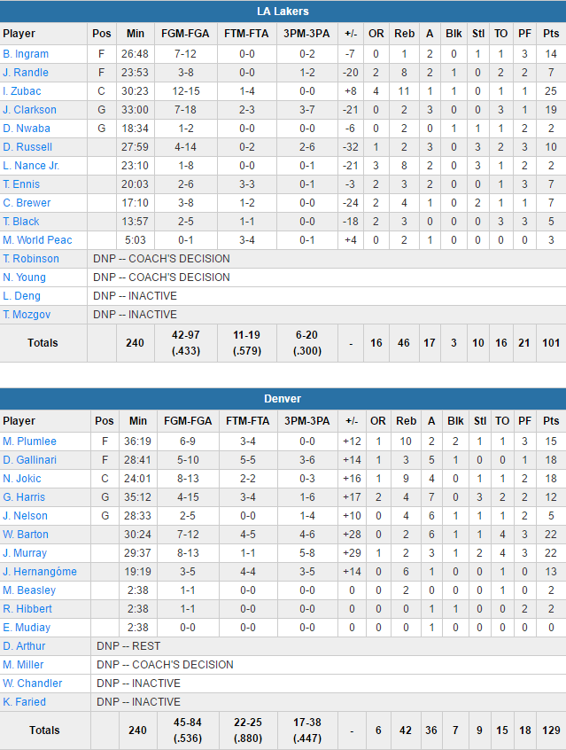Los Angeles Lakers – Denver Nuggets 101-129