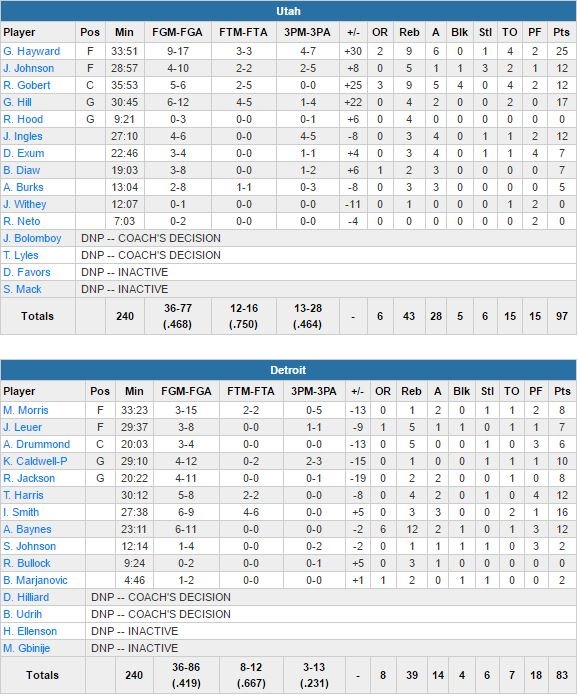 Utah Jazz – Detroit Pistons 97-83