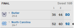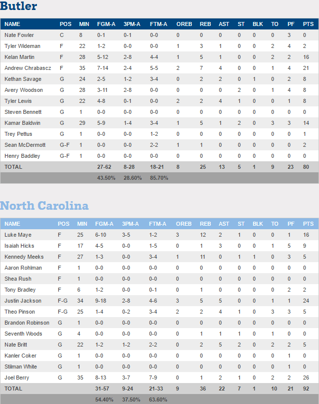 Le dernier qualifié c’est North Carolina, qui domine Butler dans le sillage de Justin Jackson et Joel Berry.