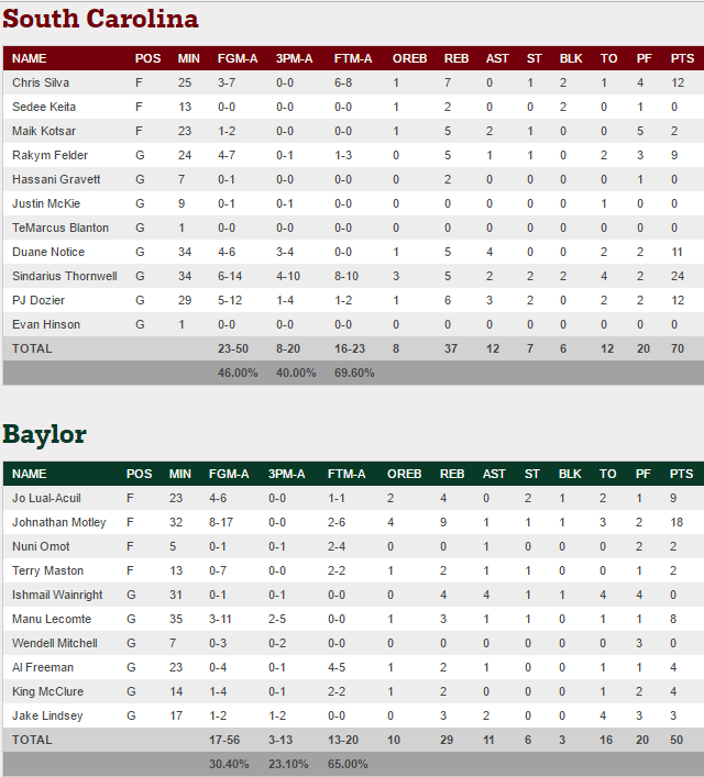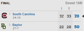 L’autre surprise c’est la victoire de South Carolina, qui continue son superbe parcours en dominant Baylor de 20 points !